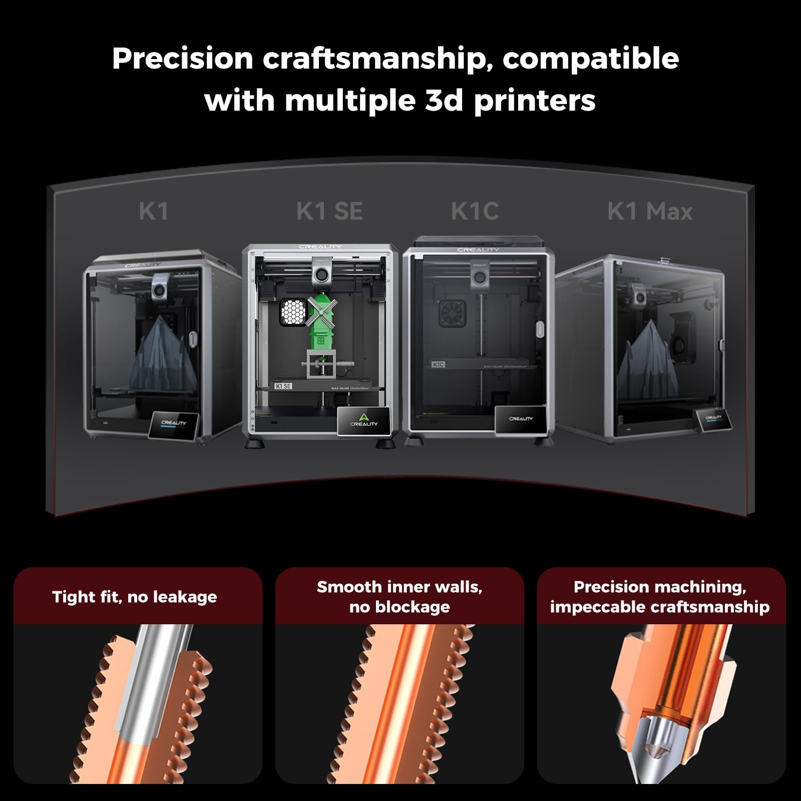 Creality designed these K1 hotend upgrades specifically for the K1 series printers—K1C, K1, and K1 Max. The all-metal integrated nozzle throat lets you disassemble and swap nozzles quickly, which is a huge plus if you like to experiment with different setups.