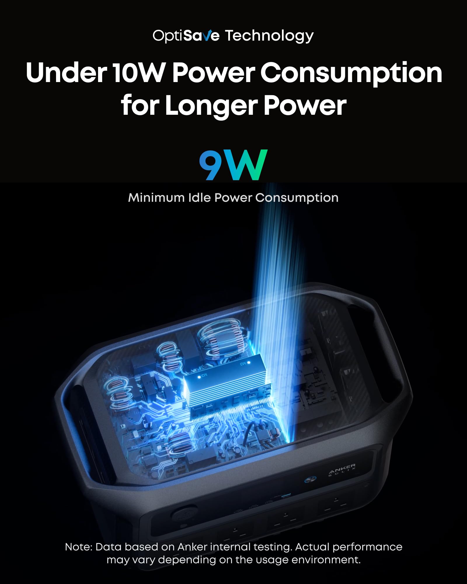 Anker’s ultra-efficient inverter technology keeps standby power draw down to just 9W. That means it can stay on standby for up to 230 hours, which is a huge plus if you’re dealing with longer power cuts.