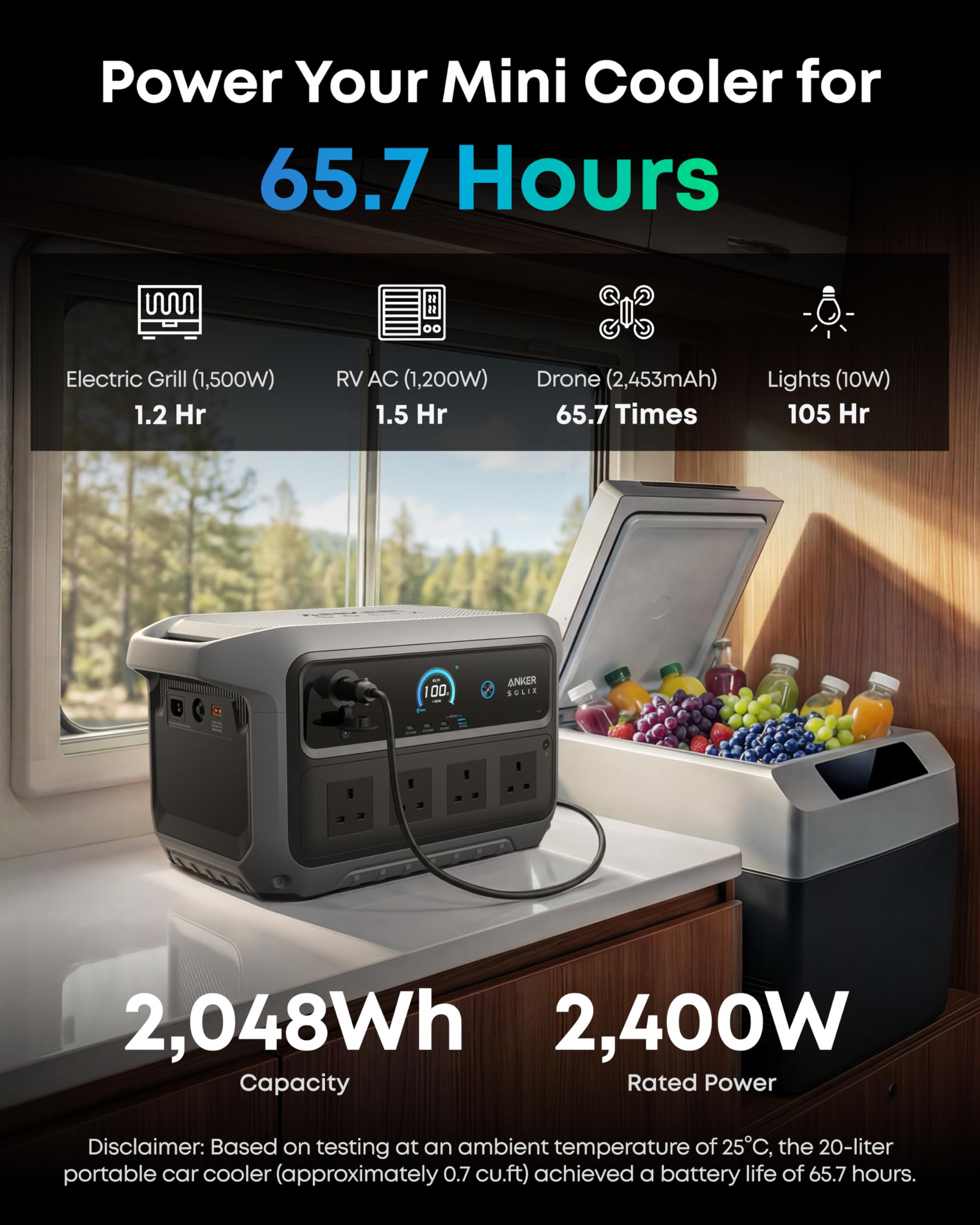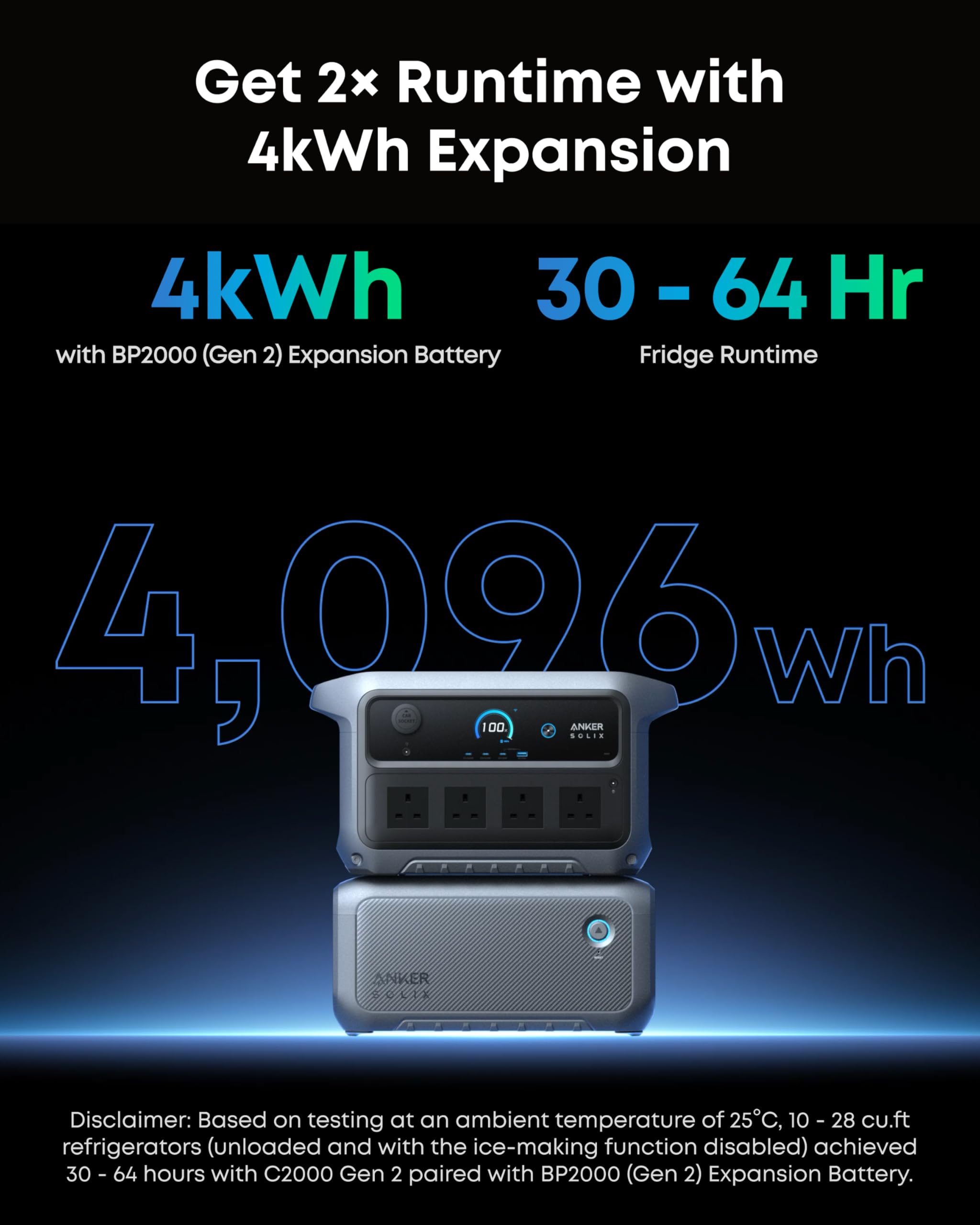 The C2000 Gen 2 comes packed with a 2,048Wh LiFePO4 battery, and it can deliver 2,400W of rated power with a peak of 4,000W. That’s more than enough for heavy-duty appliances, from RV air conditioners to a couple of power tools.
