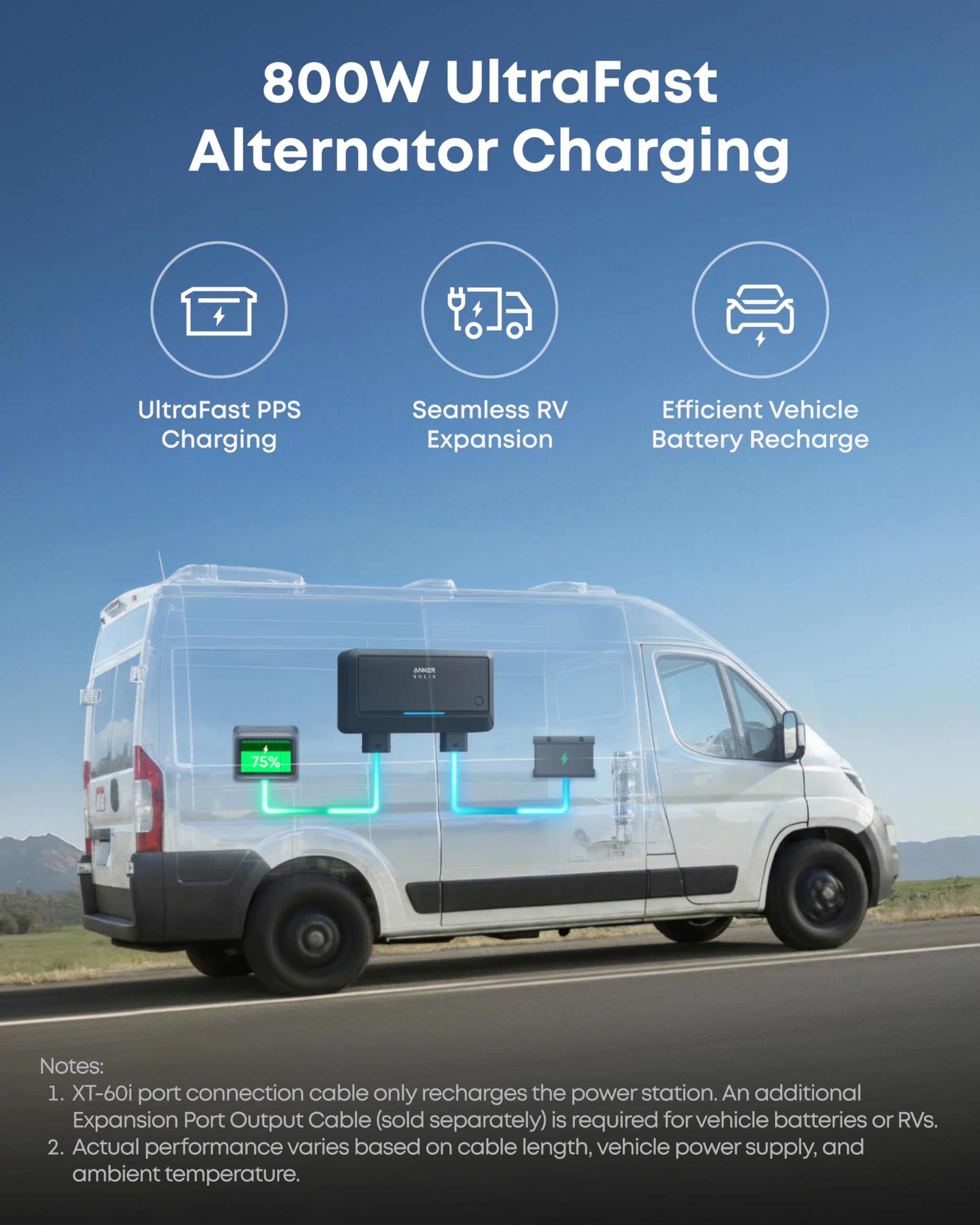 Charging it up is quick—just 58 minutes for a full charge via AC. You also get several ways to recharge, including 800W alternator charging, which gets it back to full in about 2.6 hours while you’re on the road.