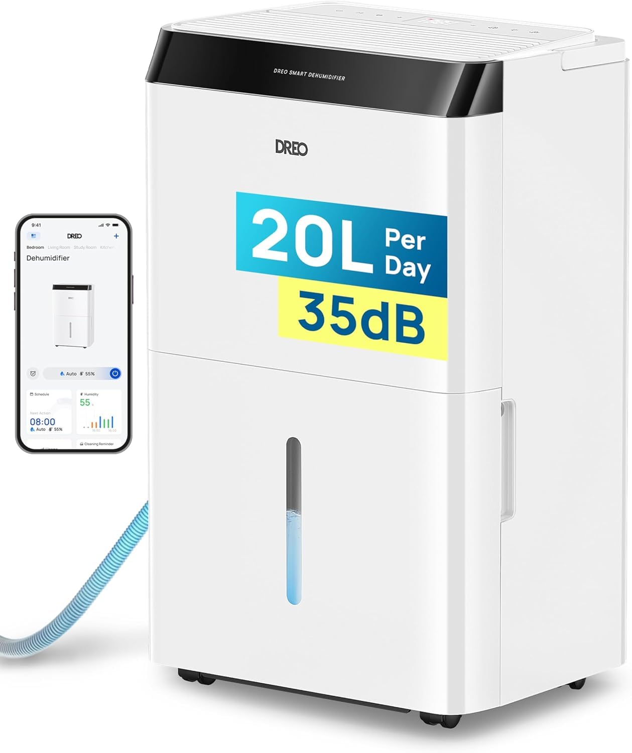 Dreo 20L/day Smart Dehumidifier Low Energy, 35dB Quiet, Laundry Dry, Whole House, Humidity Sensor & Display, Large Room Auto, 3 Speed, Humidity Control, Good Housekeeping Institute Approved 2026