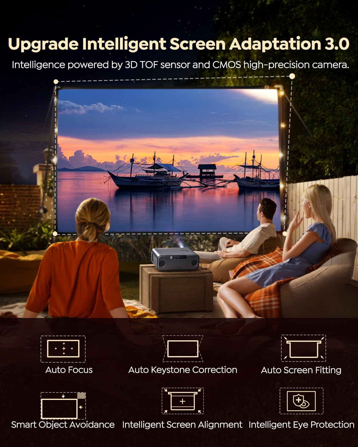 AI-driven auto focus and keystone correction mean your image is always sharp and properly aligned. Whether you move it from room to room or set it up outside, you won’t be fiddling with settings for long.
