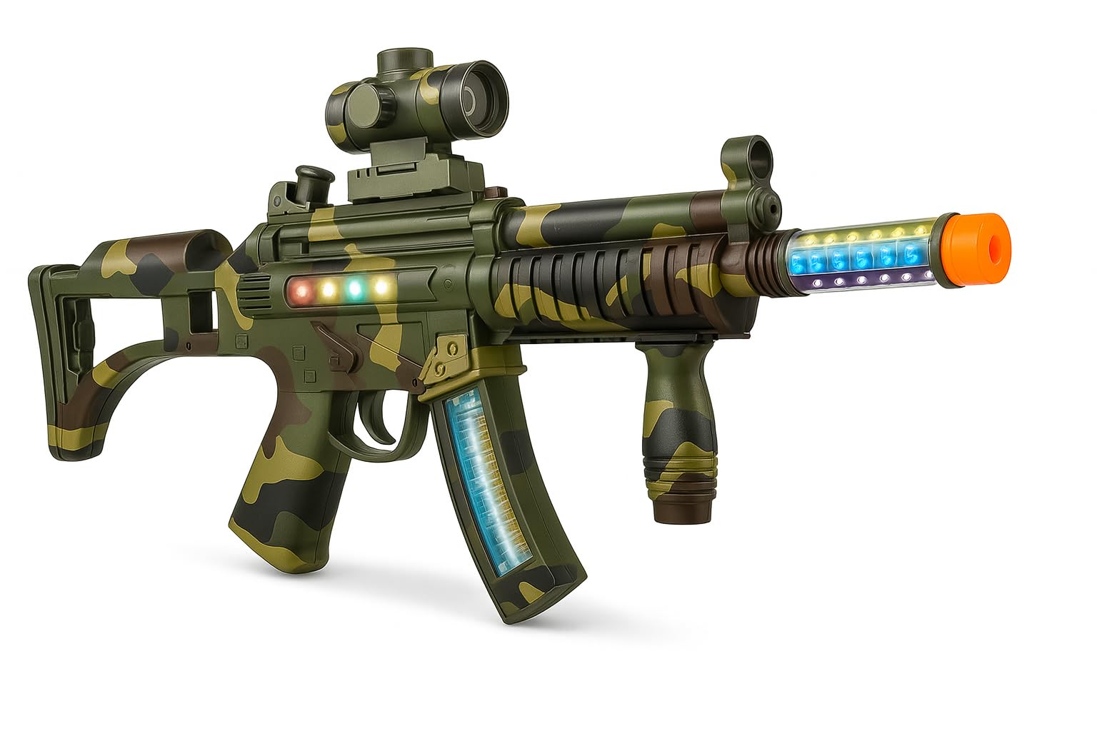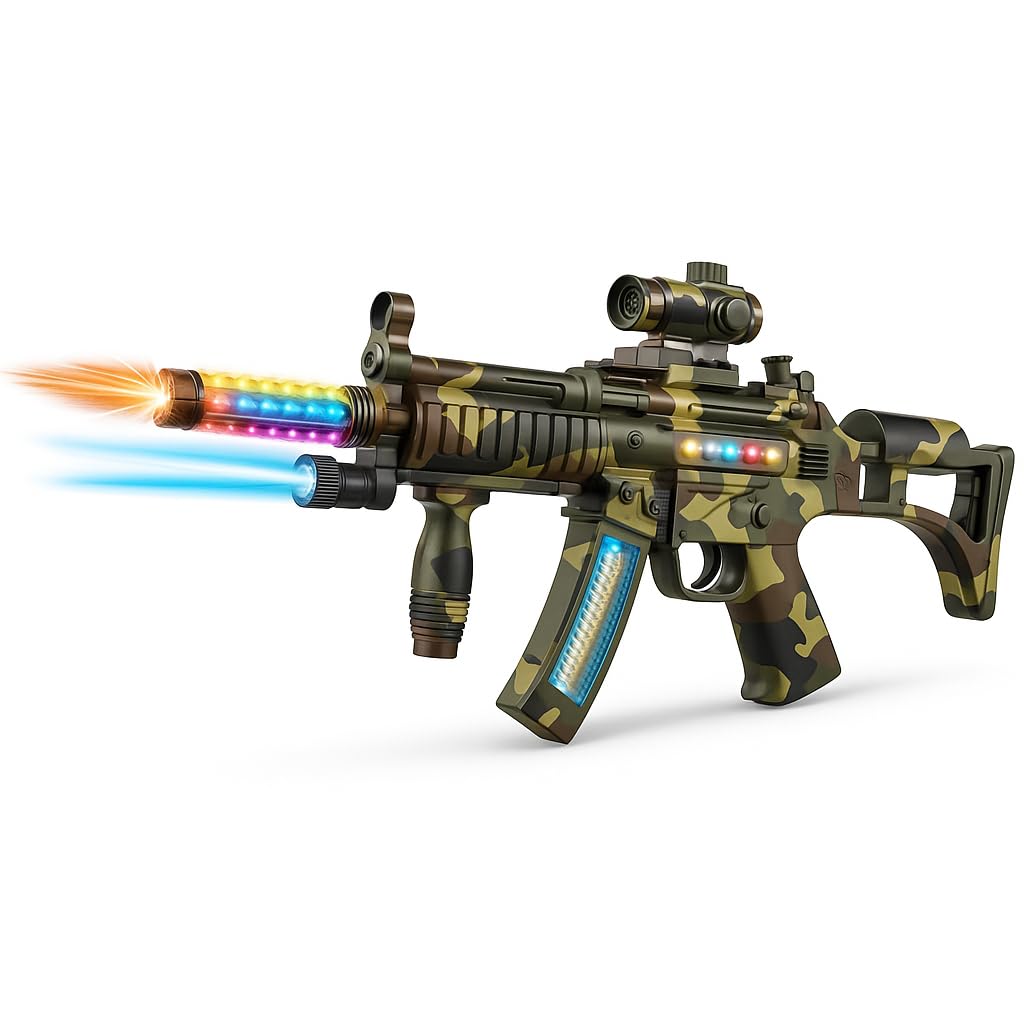 The Copper Top 60cm Kids Toy Military Gun is an engaging option for young children eager to explore imaginative play. With a price tag of £17.99, currently at the lowest price ever recorded, it offers features that aim to provide an immersive play experience. The toy gun stands out with its realistic sounds and lights, coupled with strong vibration feedback that simulates the excitement of military action. This makes it an attractive option for parents looking to enhance their child's playtime with something that goes beyond mere plastic.